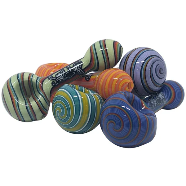 Pipa de cristal de 4 pulgadas (~10cm) de la marca de Snoop Dogg: Dogg Lbs. Pipa compacta y resistente con diseño de patrones coloridos llamativos.